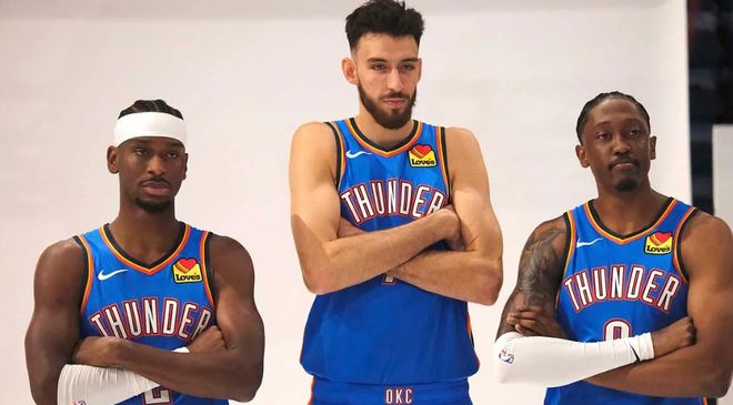 核心阵容方面,亚历山大的成长速度肉眼可见,上赛季场均31分的表现已然迈入联盟顶级得分手行列,他的突破杀伤与关键球能力,是雷霆进攻端的绝对核心。而霍姆格伦作为年轻内线的代表,场均16分8篮板的输出稳定且高效,不仅能在篮下完成护框与终结,还能拉到外线投出精准三分,为压力山大的突破拉开空间。更难得的是,这支球队的平均年龄极小,替补席上的新人个个摩拳擦掌,季前赛,大部分球队都尽遣主力,只有他们派上第三阵容参赛,仍能大胜全主力的黄蜂。上赛季的总冠军戒指还带着余温,年轻球员的冲劲与冠军经验的加持,让雷霆下赛季稳居西部第一成为大概率事件。