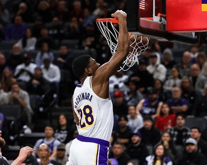 而其他三个首发的贡献都非常大。特别是八村垒,他还是可以保持一个稳定输出点,12中6获得15分,就是防守端没什么价值。海斯在艾顿不能打的情况下,他依然可以在内线保持稳定输出,全场7中7获得15分,而且防守端的护框效果还非常好,后续估计可以稳轮换了。斯玛特依然是球队的基本盘,防守端效果拉满,还能组织,也能进三分,他可以给到全方位的帮助。
