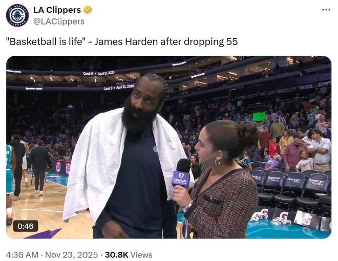 单核带队的哈登还在C!爆砍55分率队终结连败梦回火箭,一口气创9大纪录历史最佳,更加让人动容的是这名36岁老将赛后一番真挚的发声。