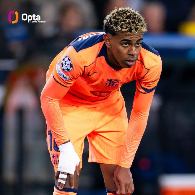 此役对阵布鲁日打入一球后,18岁的亚马尔在欧冠联赛中已直接参与了13个进球(7个进球,6次助攻)。